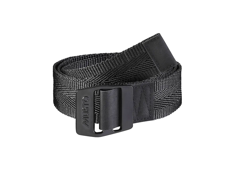 Cintura Musto Essential Belt Nero, adatta per tutti i giorni, realizzata 100% in robusto poliestere.