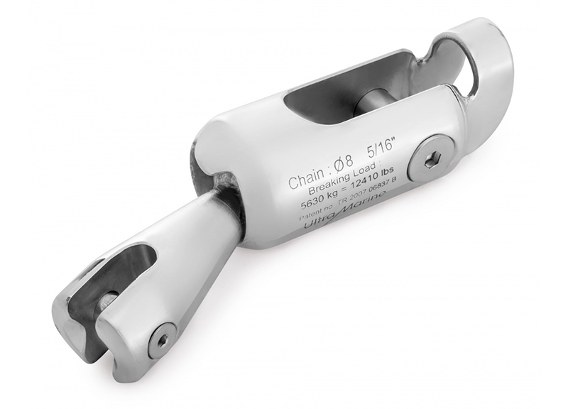Giunto Ancora girevole Ultra Marine per Ancore fino a 60 Kg e catena fino a 13 mm, realizzato in acciaio inossidabile AISI 316, straordinariamente resistente e compatto.