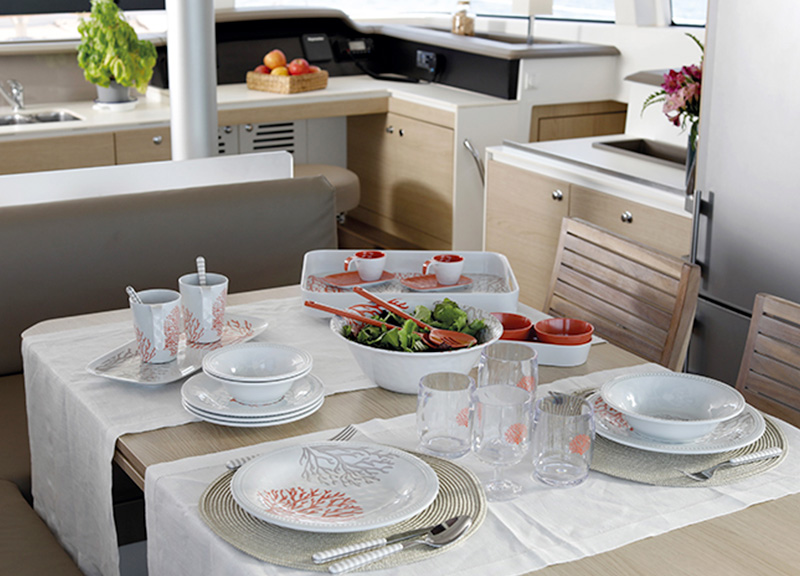 La linea di piatti "Coral" presenta una decorazione con corallo.