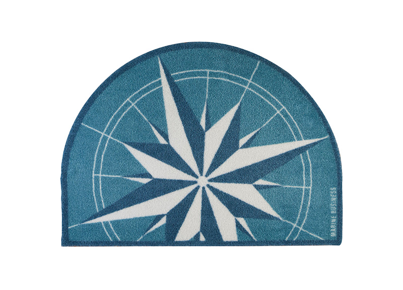 Tappeto antiscivolo a forma di mezzaluna realizzato in poliammide, adatto sia per l'uso all'aperto che per gli interni dell'imbarcazione.