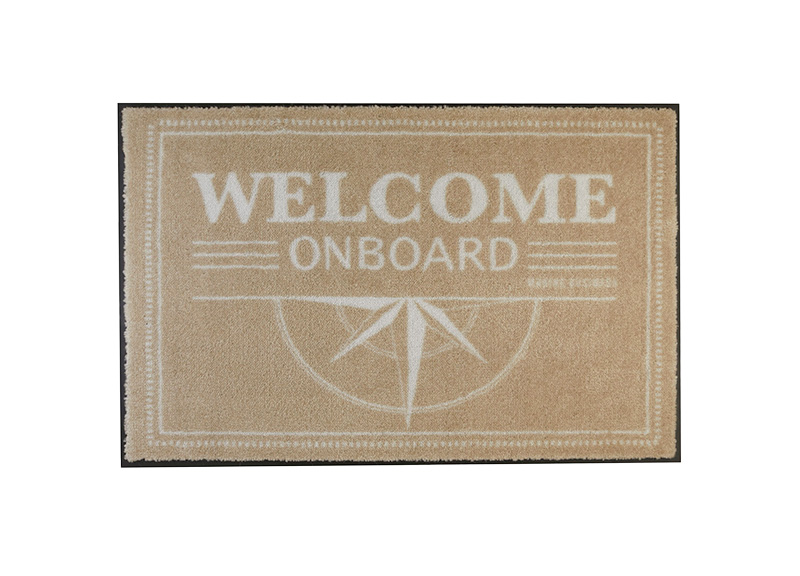 Tappeto Marine Business Welcome Brown, antiscivolo e realizzato in tessuto simile ad una moquette.